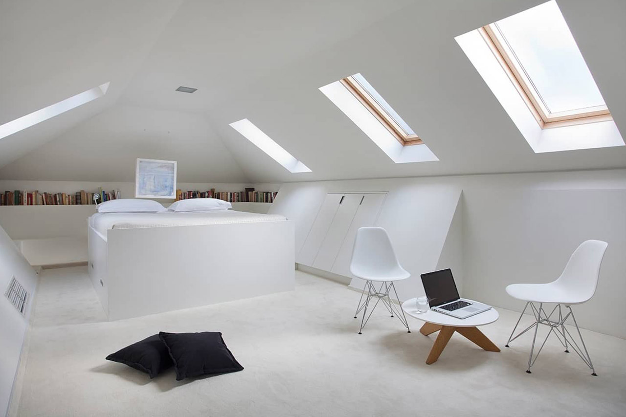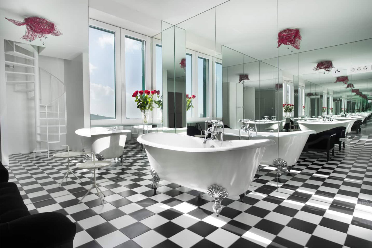 The second floor of Villa Paulina consists of two spacious suites, the Lidija and the Lukša suite. Both suites are furnished with a king-size bed and have access to a private bathroom, while one of the bedrooms also has an exit to a gorgeous balcony with a sea view. The wellness facilities of Villa Paulina are also located on this floor of the Villa, which includes a sauna room with a shower and a romantic black and white mirror room with a Devon & Devon bathtub. In contrast to the rest of the house, the attic of Villa Paulina is designed in a minimalist futuristic style with a king-size bed and a private bathroom which is ideal for guests who like an extra dose of privacy and relaxation.